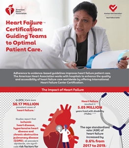 Get With The Guidelines®-Heart Failure (GWTG-HF) addresses a challenge healthcare professionals face by providing a consistent process that promotes adherence to the latest treatment guidelines and improves patient care with measurable outcomes. GWTG-HF also facilitates earning International Heart Failure Center Certification. This is an in-hospital program for improving care by promoting consistent adherence to the latest scientific treatment guidelines.