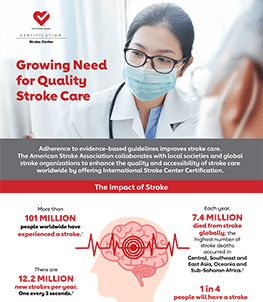 International Stroke Center Certification from the American Stroke Association (the Association) is designed to help hospitals deliver the highest standard of stroke care—wherever they are in the world.